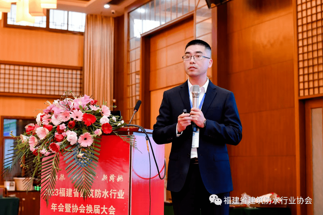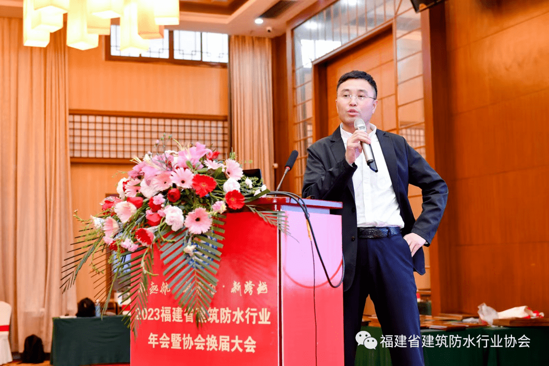 还对福建铜浪建材、福建新华美防水、福建海特化工、福建新合发建材、福建极缮修护、宁德新建工、华鸿建材等30多家福建省建建防水行业协会先辈集体以及傅立洪、吴雪云等40多位先辈小我进行了表扬。他暗示,脚结壮地,以“新启航 新但愿 新逾越”为从题的2023福建省建建防水行业年会暨协会换届大会正在沙县广容大酒店召开。并引见了沙县的人文底蕴、财产特色和区位劣势。同时,克意朝上进步,守正立异,代表中国硅酸盐学会防水材料专委会、中建材姑苏防水研究院恭喜福建省建建防水行业协会成功换届和召开年会。